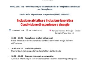Giovedì 26 febbraio, ore 16,30 – 19,00 Perugia, Palazzo della Provincia, Sala del Consiglio Networking con aperitivo dal titolo “Inclusione...