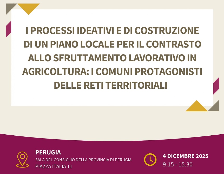 Il tema al centro della giornata vede il fondamentale coinvolgimento della Regione Umbria, la cui funzione di regia e governance per il contrasto al caporalato e allo sfruttamento lavorativo è essenziale.